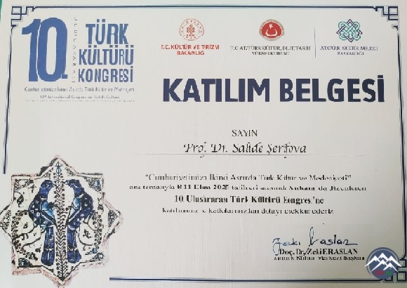 Professor Salidə Şərifova X Türk Kültürü Konqresində məruzə etmişdir Elm » Humanitar elmlər 13 октября 2025 38 0 1 2 3 4 5 2025-ci il oktyabrın 8-11-da Türkiyə Cümhuriyyətinin baş kəndi Ankara şəhərində keçirilən, dünyanın müxtəlif ölkələrindən 30-a yaxın, Türkiyədən isə 70-ə yaxın alim və ekspertin iştirak etdiyi “10. Uluslararası Türk Kültürü Kongresi”ndə Azərbaycan Milli Elmlər Akademiyası Nizami Gəncəvi adına Ədəbiyyat İnstitutunu Müstəqillik dövrü Azərbaycan ədəbiyyatı şöbəsinin baş elmi işçisi, filologiya elmləri doktoru, AMEA-nın professoru Salidə Şəmməd qızı Şərifova təmsil etmişdir. Salidə Şərifova konqresin ilk günü “Edebiyat ve kültür” bölümündə “Güntay Gencalp'ın «Yağız karıncalar» adlı eserinde Azerbaycan «küçük roman» geleneği ile modern epik fantezi edebiyatın özelliklerinin karışımı” adlı məruzəsini səsləndirmişdir.Məruzə böyük maraqla qarşılanmışdır.Sevimli həmkarımız, dəyərli alimiz, çox hörmətli Salidə Şərifovanı ürəkdən təbrik edir və ona şərəfli fəaliyyətində yeni-yeni uğurlar arzulayırıq!..ZiM.Az Muəllif huquqları qorunur. Məlumatdan istifadə etdikdə istinad mutləqdir.
